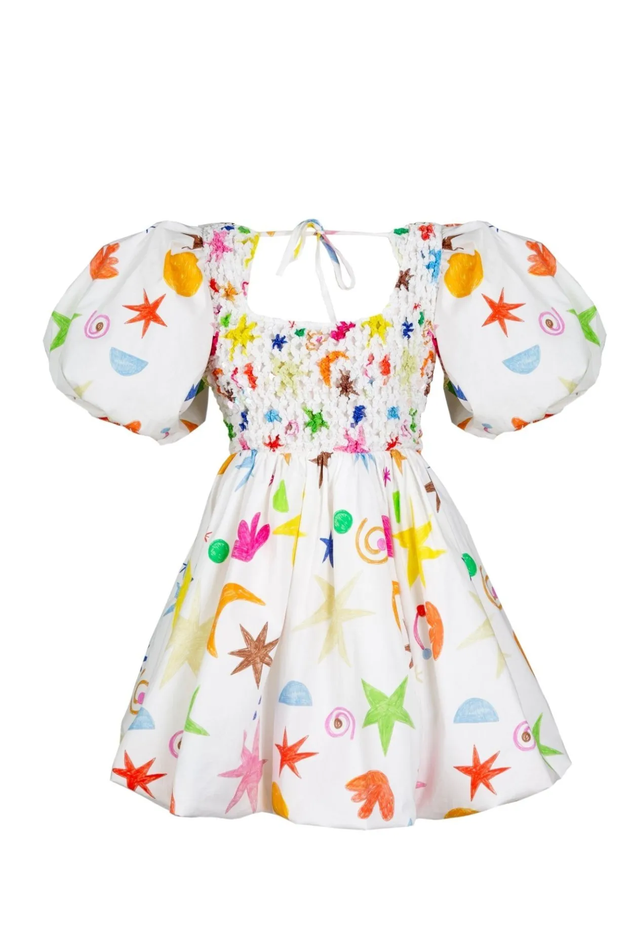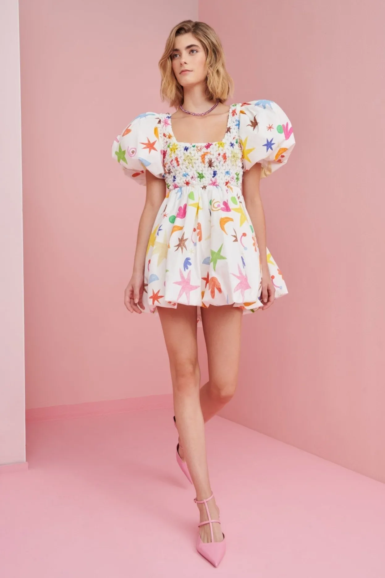 Be The Life Of The Party With Our Astral Dress! Our Stunning Piece Has A Star Motif Print, A Short Skirt, Square Neck And Puff Sleeves. Are You Ready To Play?