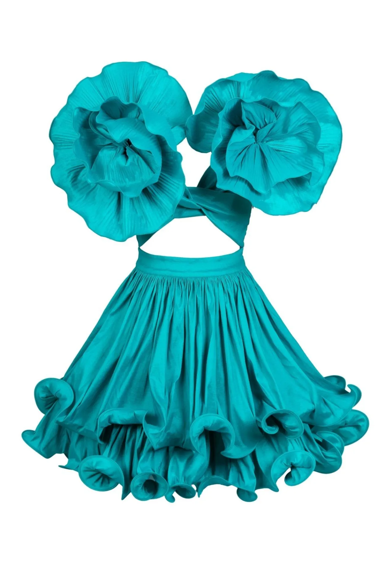 This Dress Speaks For Itself… With Flowers Adorning The Shoulders, A V-Neck And Ab Cut-Out, Paired With A Short Ruffled Skirt, You’Re Sure To Be The Center Of Attention!