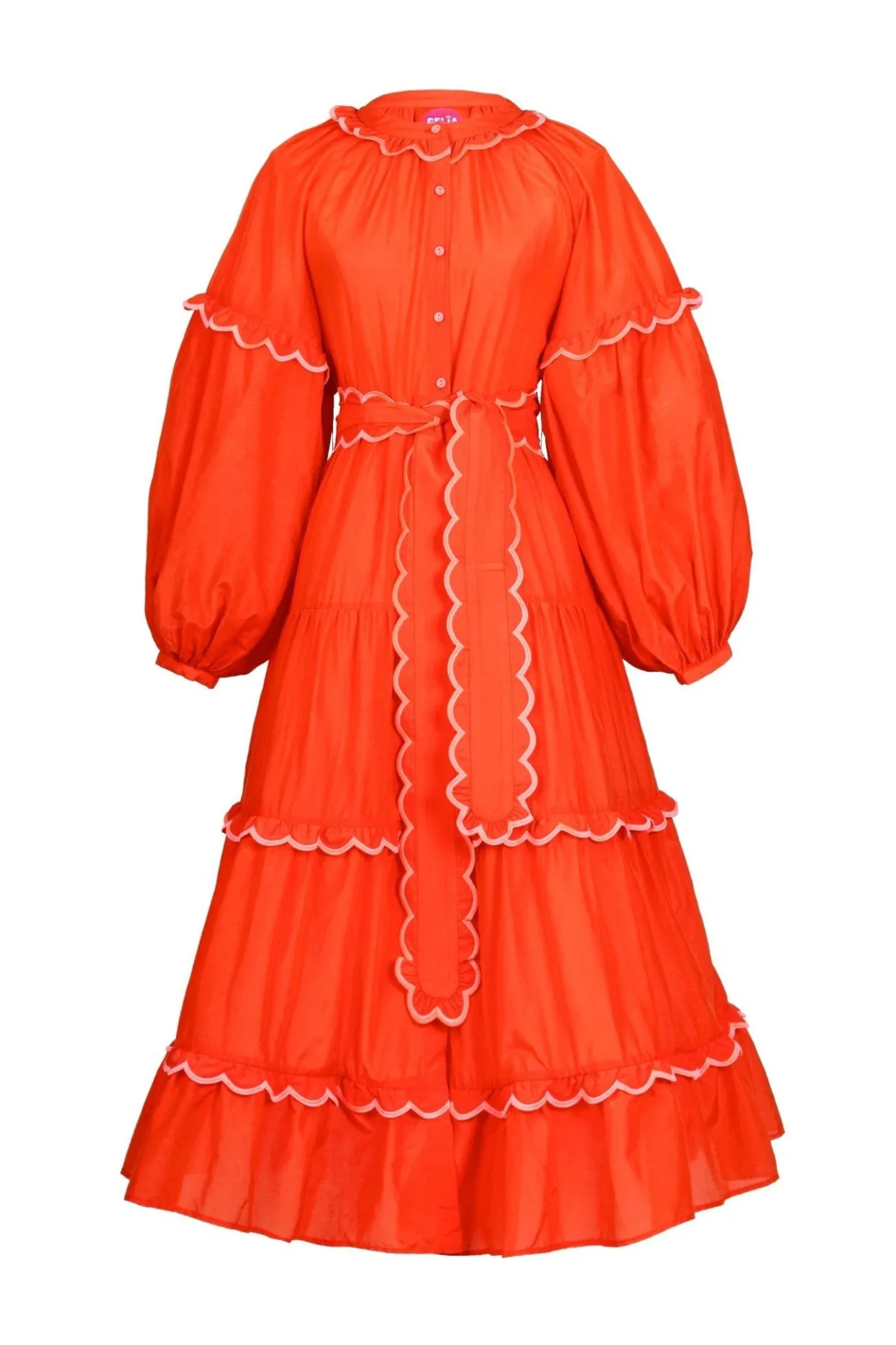 Long, Flowy Deep Orange Dress. The Adjustable Waist And Breathable Fabric Makes This The Perfect Choice For Any Hot Summer Day.