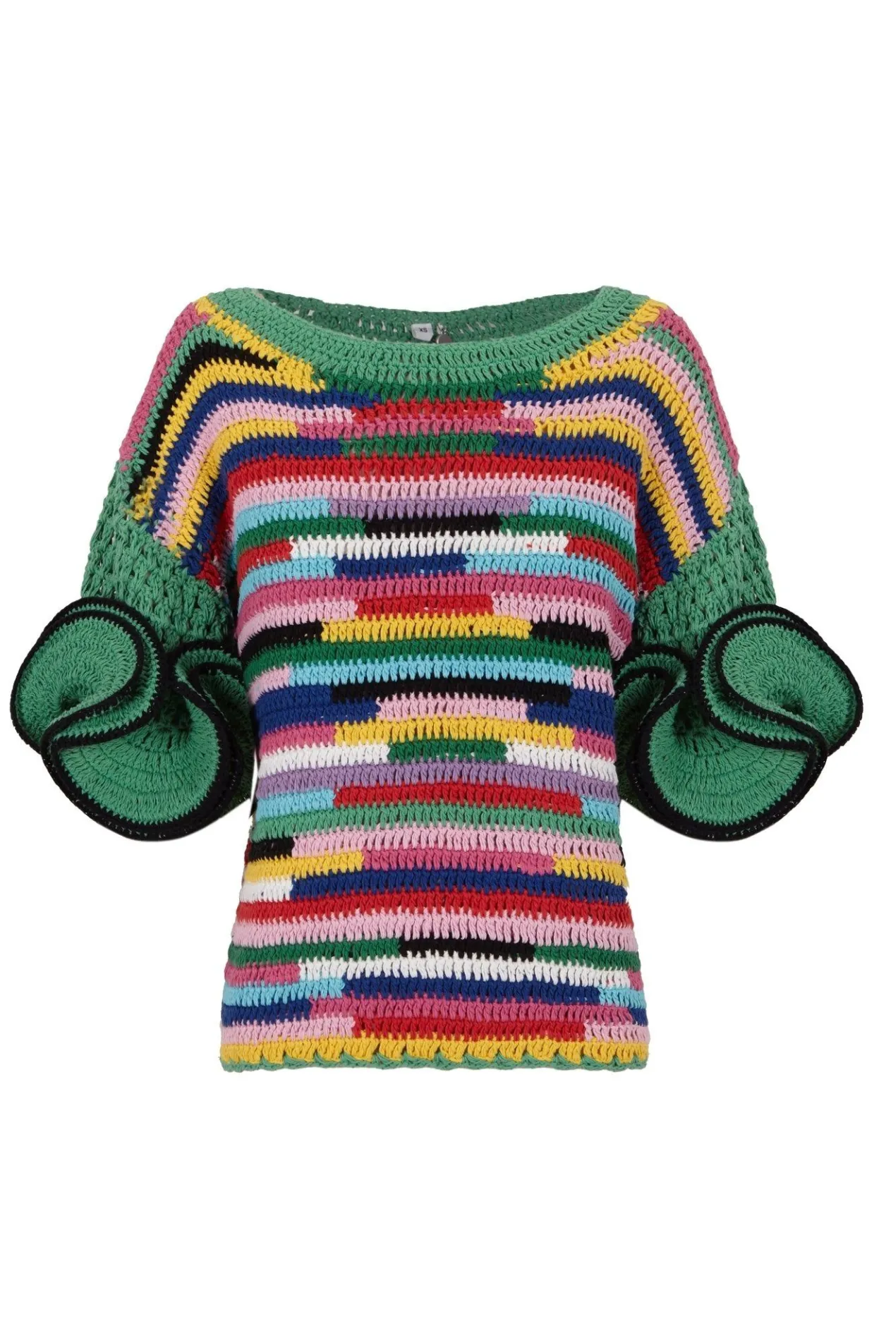 Stripped Crochet Top With Puffed Green Sleeves And A Bateau Neck In A Colorful And Standout Stripped Print. Its Lose Figure Is Perfect For A Hot Summer Day, Especially When Paired With Our Chimera Shorts.