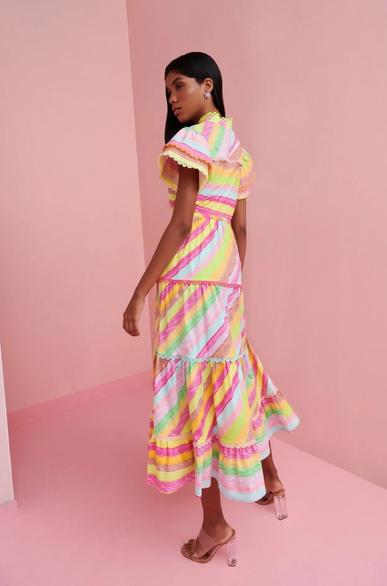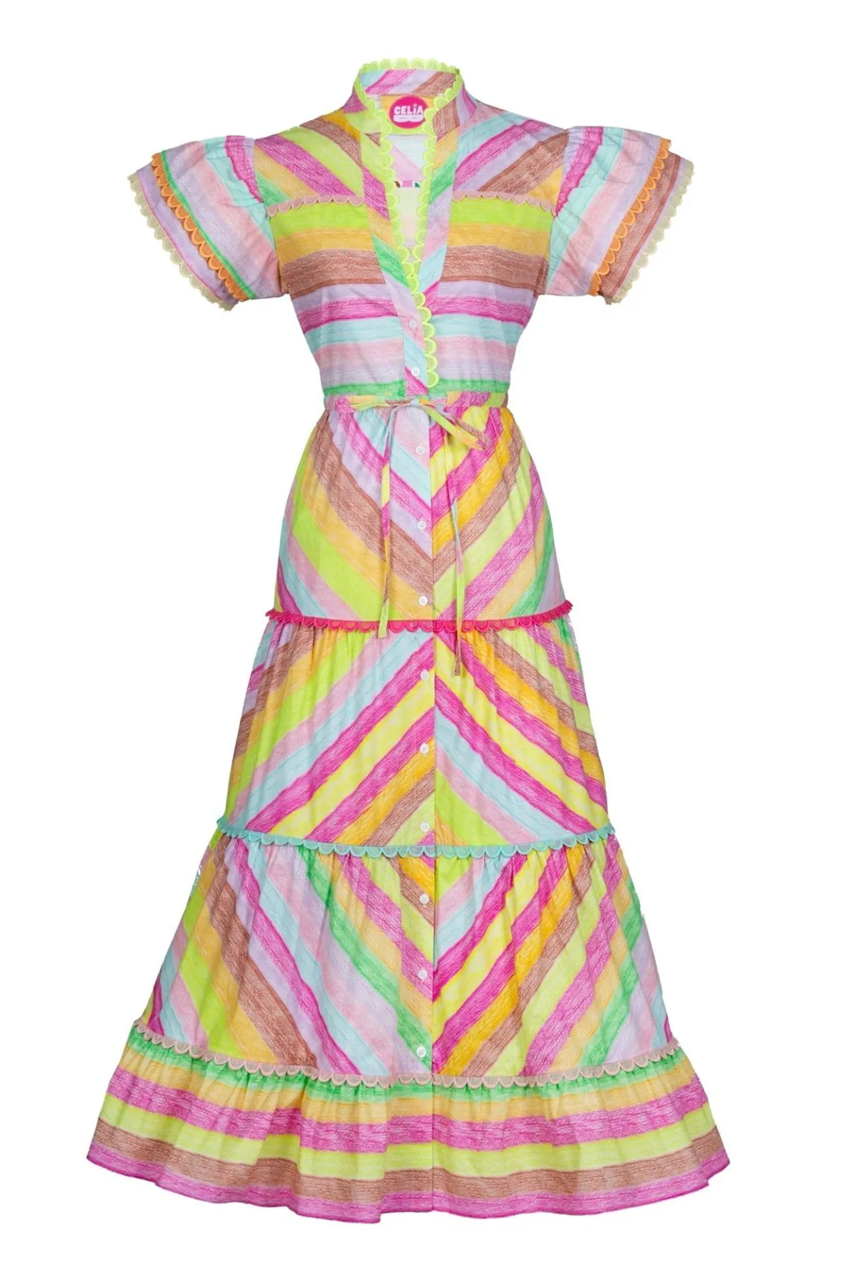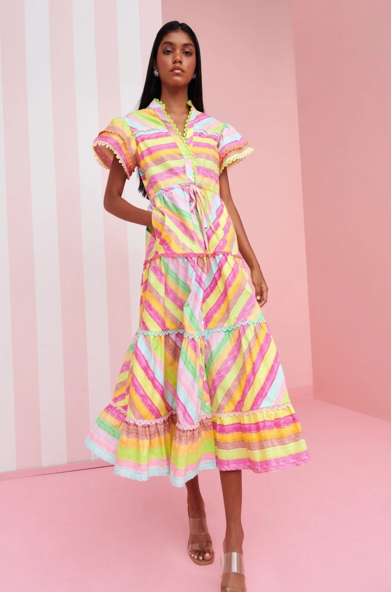 This Uniquely Hyptonic Print Paired With One Of Our Summer Classics Simply Hits Different ! Midi, Short-Sleeved And Ruffled, What More Could You Ask For? Our Echoes Dress Ensure No-One Can Take Their Eyes Off You!