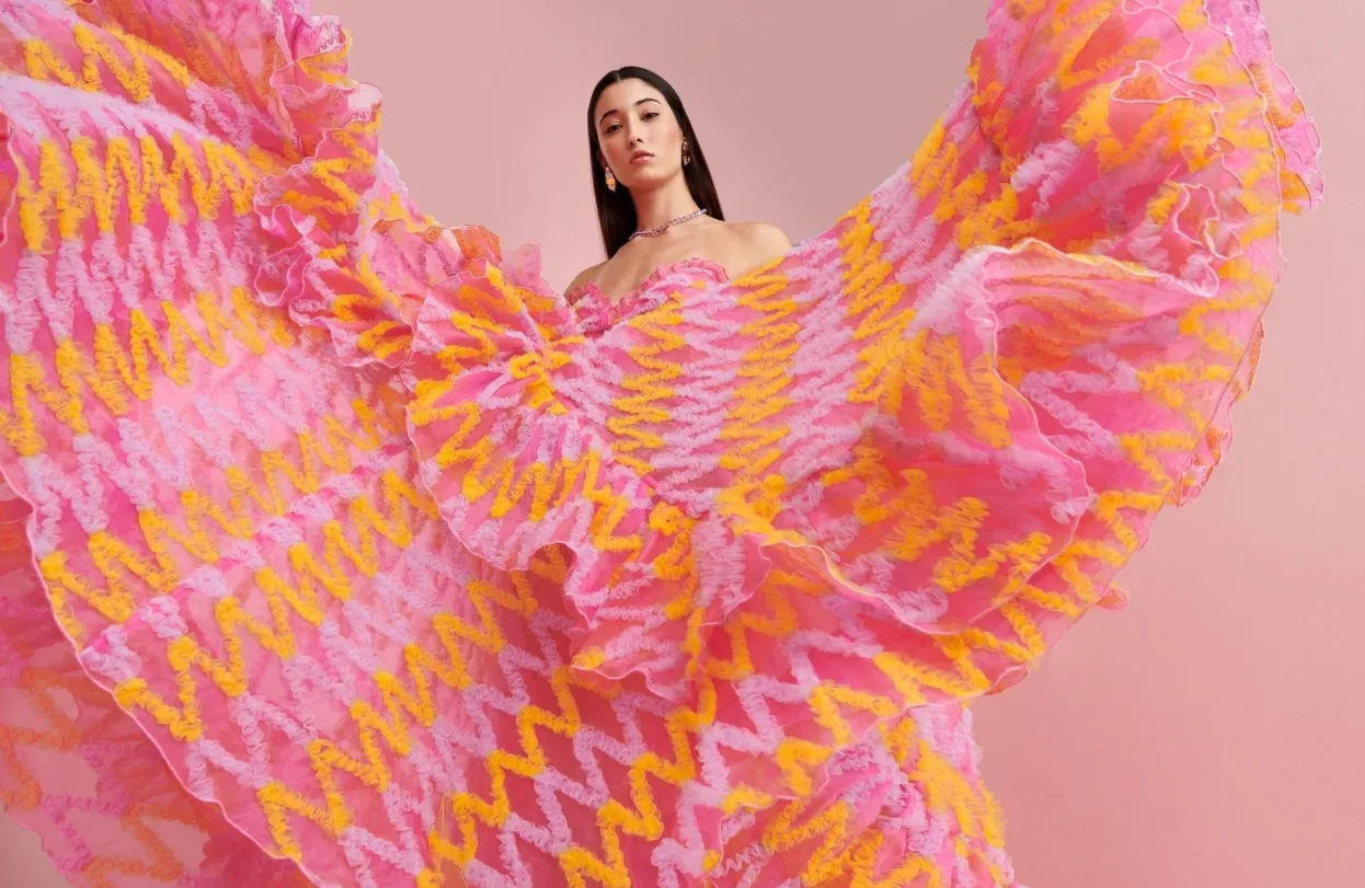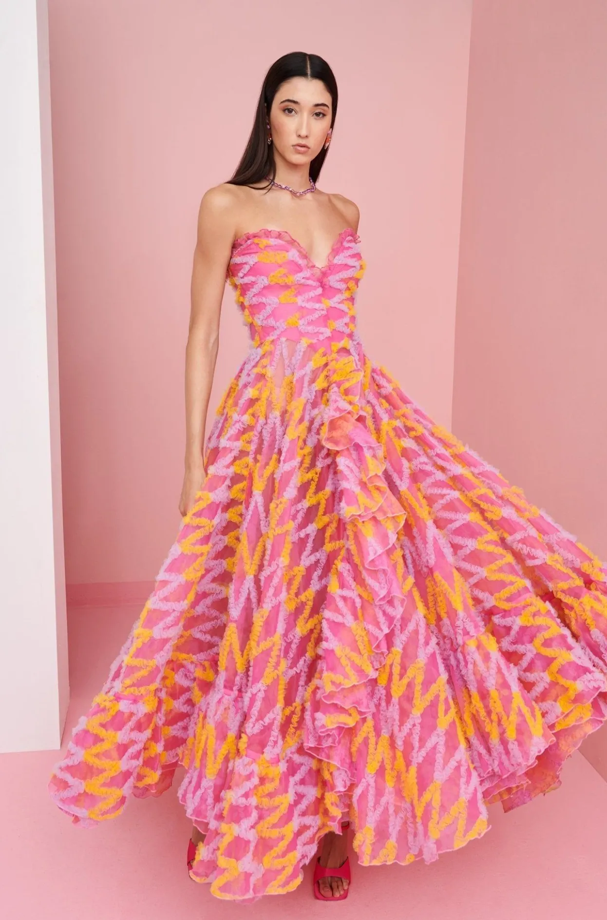 Elevate Any Summer Event In Our Fabulous Pink Party Dress! The Sweetheart Neckline, The Layers And The Yellow Details Will Make This The Perfect Choice For Any Event!