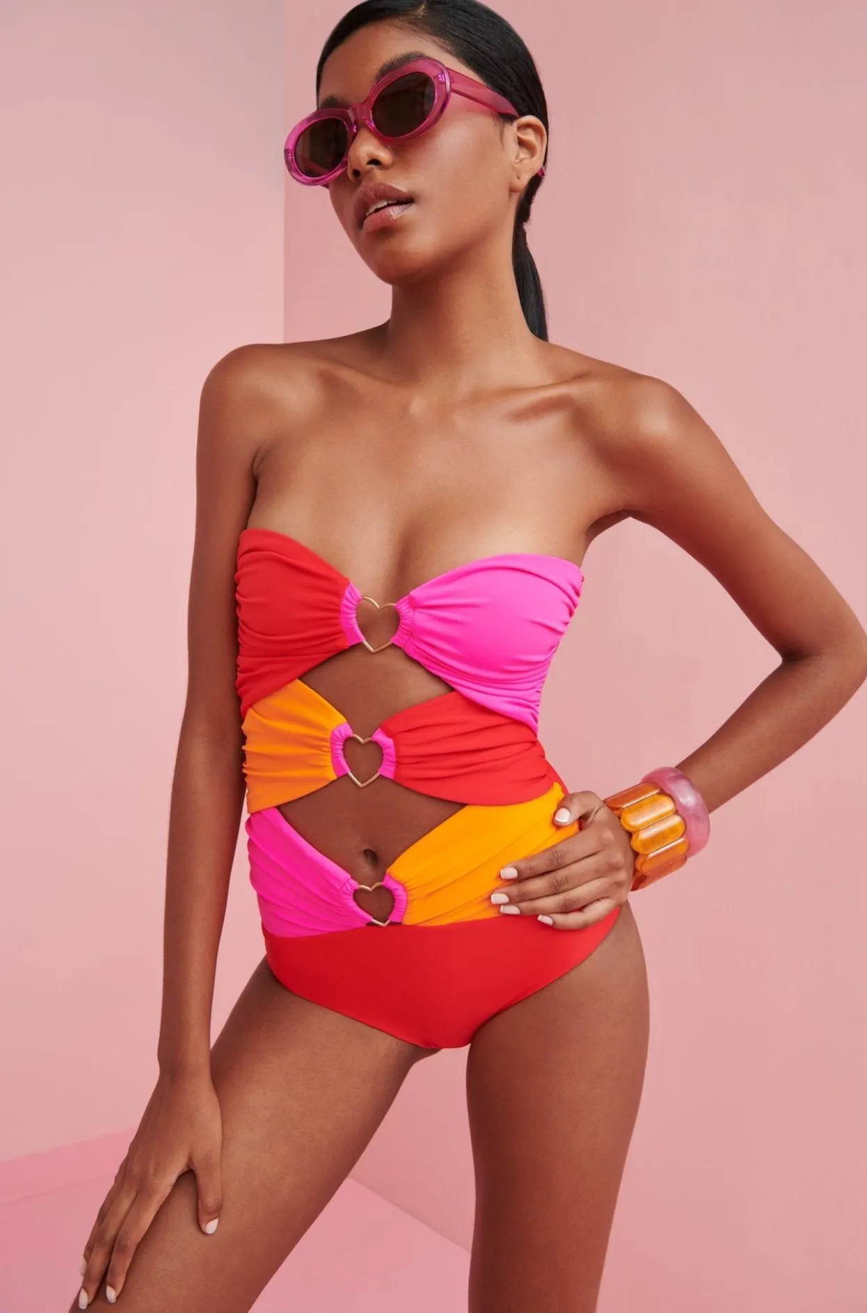 It’S Chic, It’S Sexy, It’S Colorful… It’S Celia B! This Swimsuit Is Sure To Leave Some Gaping Mouths, It’S Cut Outs Are The Perfect Touch Of Sexy, And It’S Vibrant Tones (Pink, Red And Orange) Are Just What You Are Looking For!